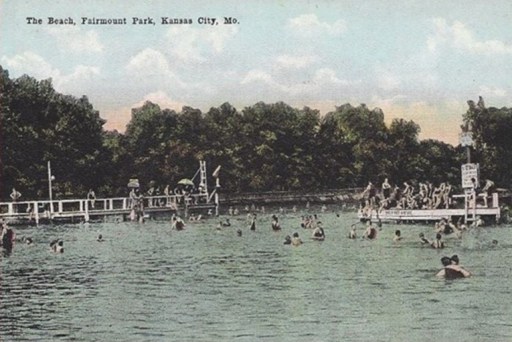 Like Washington, Fairmount Park became known for its special “death-defying” attractions. Fairmount had its own balloon ascension attraction, as well as Speedy’s Great Dive (a 100-foot dive into a 35 inch water tank), and Chiko, the Brazilian Flying Monkey Man. But it also had a great range of more tranquil amusements. The 8-acre lake was home to the bath house and bathing beach, a dance pavilion, a picnic pavilion, and the park’s best viewpoint for the regular fireworks displays. By the early 1900s, Fairmount had more rides than other parks, including a roller coaster, a Ferris wheel (first seen at the recent 1893 Chicago Columbian Exhibition), a fun house, mechanical jumping horses, a circle swing, a miniature railroad. By 1907, there was an Angora goat far, a roller rink, and the second golf course in Kansas City.