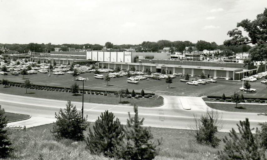 With J.C.’s passing and the trends in social and economic patterns that followed the end of World War II, the Nichols Company’s approach to development changed, shifting away from residential and commercial, to commercial alone. As noted, the city had grown up around and beyond the property. So unlike other Nichols Company centers, this one was never part of a larger plan of connected development. In 1952 and again in 1957 the company publicly announced plans for the property, and both times had to renege. Finally, in 1959, with the acquisition of one final parcel, the company announced its plans for the center they were going to call The Landing, an homage to the riverboat landings that had been the city’s first source of commerce.